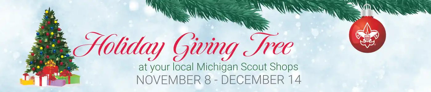 Holiday Giving Tree 2025:  Stop in the store and support a Scout that could benefit from a uniform, handbook or other scouting essential.  Visit the tree in store to make your choice.