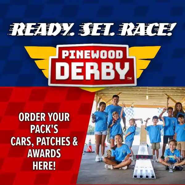 Order your Pinewood Derby cars between November 1 – March 31 for a bulk discount!  And don’t forget to pre-order/order you Pinewood 2026 patches, too!